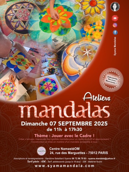 Des ateliers ont lieu régulierement à Paris, en province mais aussi en Belgique et en Suisse par le Mandala Tour