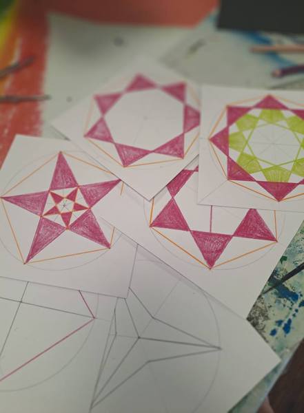 - Construction et réalisation des symboles géométriques universels et leur intégration concrète par la pratique.