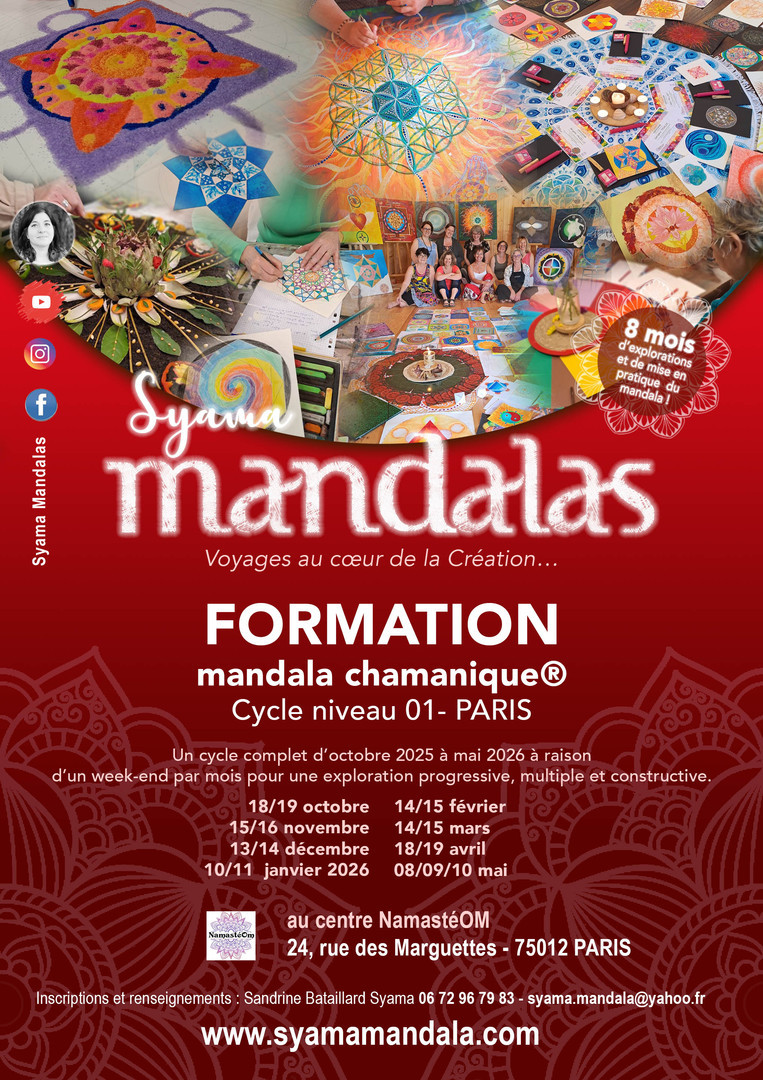 Le parcours de la transmission continue et je suis heureuse de vous proposer ces nouveaux rendez-vous pour l'année 2025/ 2026 ! La formation Mandala