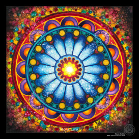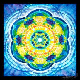 Ce mandala invite à retrouver l’origine profonde de notre Humanité, le début du grand rêve de la Vie, afin d’y marcher pas à pas en toute pleinitude. Au 1er cercle était l’Unité...»