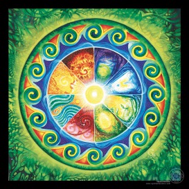 «Les piliers fondamentaux de la maison Terre, les élémentaires animent nos cellules de leurs intenses couleurs. Sur ces vibrations complémentaires, le mouvement de la Vie exprime son cycle perpétuel. Ils nous invitent à retrouver le lien intime avec Gaia.